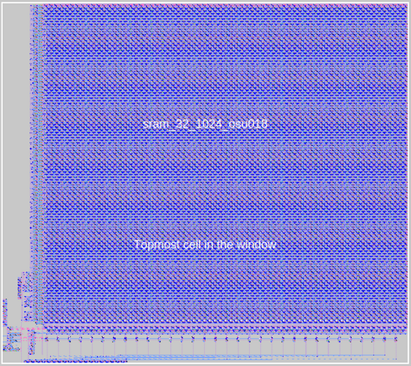 The below figure shows the OpenRAM compiler output which uses the above made cells for OSU180nm technology. However, the layout generated is not DRC clean because the compiler is not yet compatible with OSU180nm tech since it has not cleared compiler’s all internal regression test