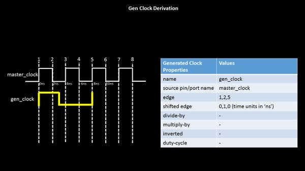 (…sentence continued from above image) the same gen_clock’ can be defined using just the edges, and removing options of the table. And below is how the generated clock definition will look like for gen_clock’