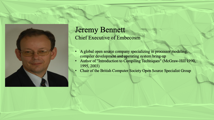 11:45-12:15 | Industry Talk | A brief history of open hardware: learning from the freeand open source software movement | Jeremy Bennett | Embecosm |