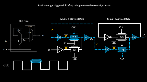 In this post, I will showing images on transistor level implementation of flip-flop and finally, we will nail down the 3 terms i.e. clk-to-q delay, library setup and library hold time.