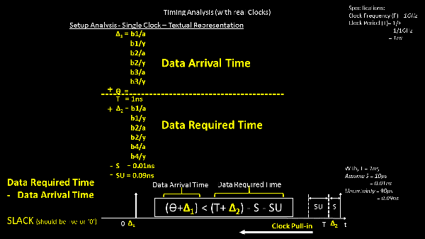 This will make a real worst-case analysis – meaning, if the SLACK meets the above criteria, we can guarantee you, the chip will function, no matter what.