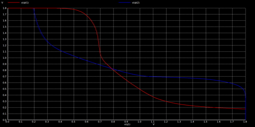 Write SNM: In Write SNM analysis, a write ‘0’ operation is used by connecting BL to the ground potential. Write SNM curve is obtained by plotting the write VTC of the first inverter and the read VTC of the second inverter together.