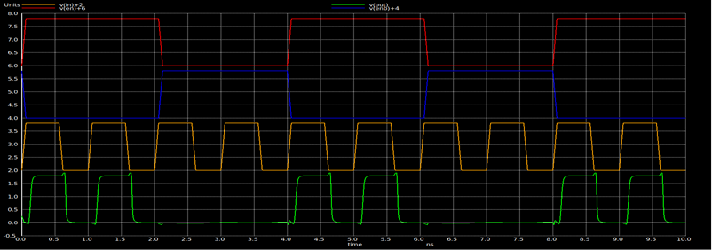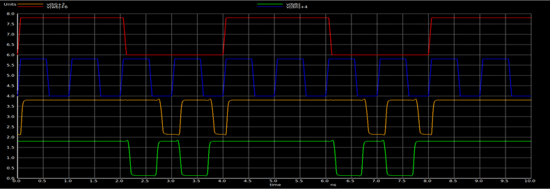 Static Voltage Noise Margin (SVNM) – It is the maximum tolerable dc noise voltage at internal nodes of the bitcell before its content flips and it is measured as the difference between point C and point A. SVNM = 0.617V