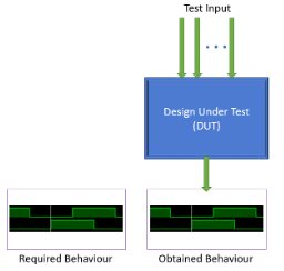 Verification of circuit design takes place by comparing the desired result with passing the test input to the device under test