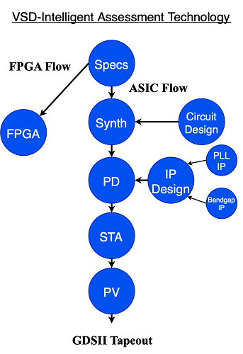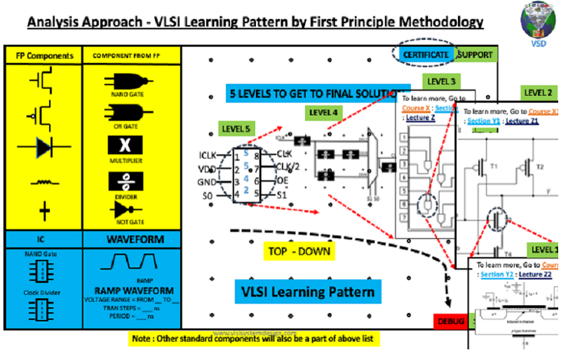 VSD offers online course in complete spectrum of vlsi backend flow from RTL design, synthesis and Verification, SoC planning and design, Sign-off analysis, IP Design, CAD/EDA automation and basic UNIX/IT, Introduction to latest technology – RISC-V, Machine intelligence in EDA/CAD, VLSI Interview FAQ’s.
