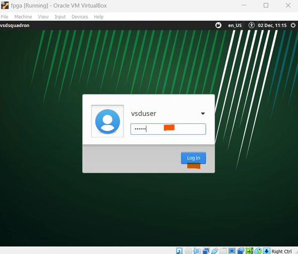 - The VM will start and prompt for password as shown in Fig 10. Enter the password as ”vsdiat” and click on ”Log In” button