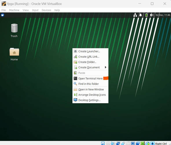 - You will see a window as shown in Fig 11. Take your cursor in the middle of the screen and right click on mouse. You will see lot of options as shown in same Fig 11. You need to left click on terminal as marked in RED in below Fig 11