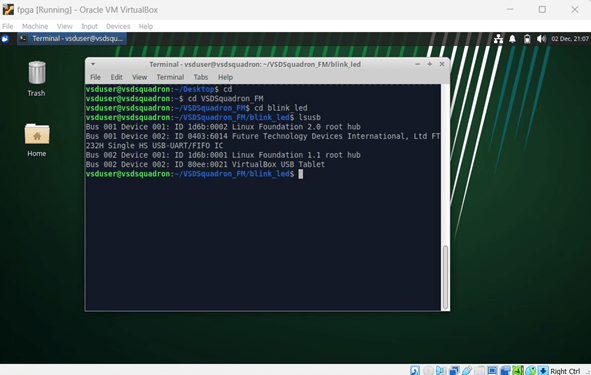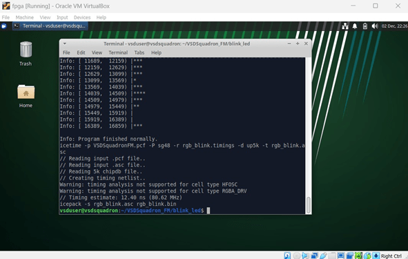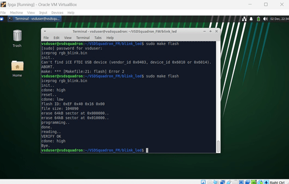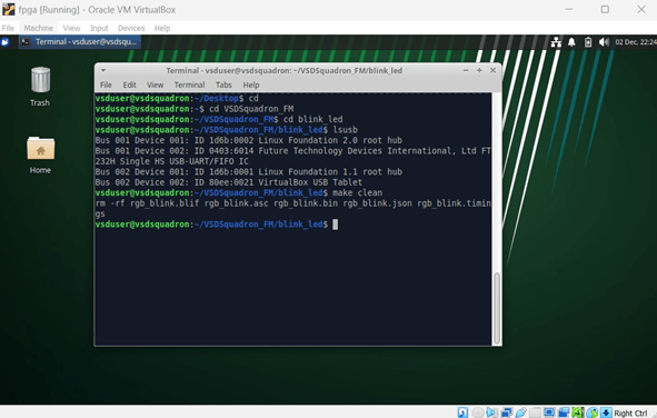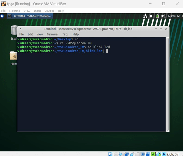 – Move into the ‘blink led‘ directory, which is the first FPGA project to be tried on VSDSquadron FPGA Mini (FM) board.