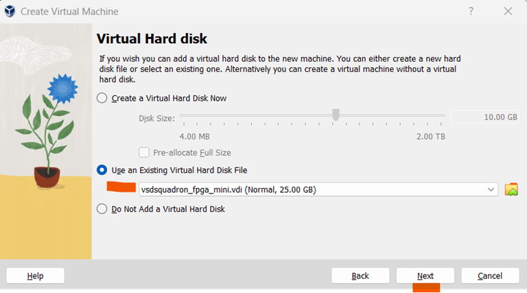- Create a virtual hard disk. Choose the ”Use an existing virtual hard disk file” option and click on the folder icon to browse to the location of the unzipped VDI file on your Windows computer as shown in Fig 7. Once done, click on ”Next”