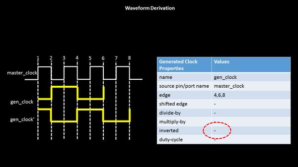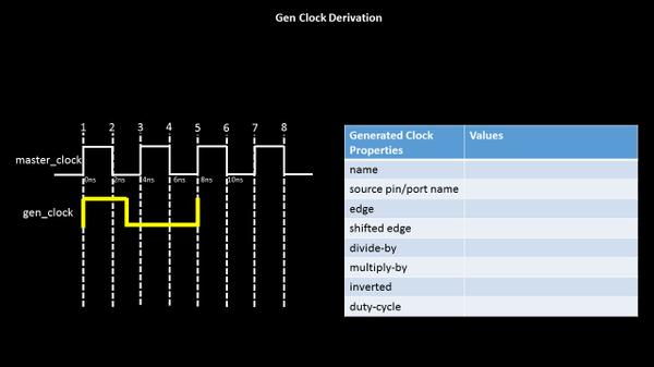 (…sentence continued from above image) the same gen_clock’ can be defined using just the edges, and removing options of the table. And below is how the generated clock definition will look like for gen_clock’