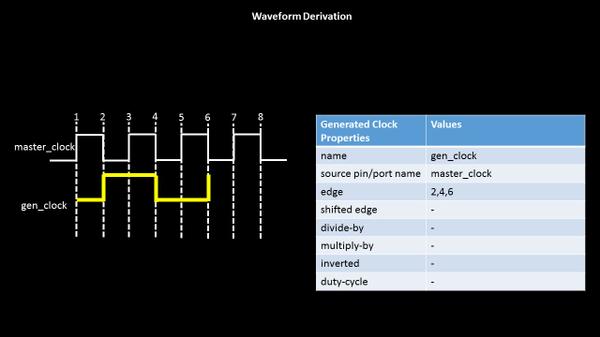So now that you get the point of generated clocks in previous Part 1 and Part 2 of this post, now let’s conclude this by waveform derivation, means, suppose you are being given a generated clock table and now you want to derive the clock waveform out of it, how do you do it. Its very very simple if you have gone through my previous posts.