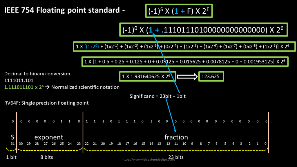 Next, the idea was to make “1.” As implicit in floating point standard itself. And that was the birth of IEEE754 floating point standard, which looks like the one shown in below image: