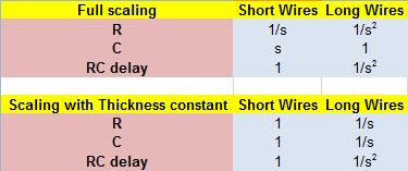 This trend of increased RC delay with scaling, combined scaling trends of ‘R’, which increases by (1/s2), decreases the ability of long wires to transmit high frequencies.