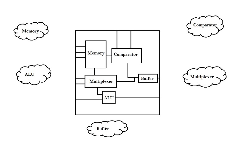 Consider a large design like microprocesssor. The abstract level behavioral description of the processsor is written using an RTL program. Large designs (e.g. microprocessor in our case) are usually synthesized into small modules. These modules are the basic building blocks of a microprocessor e.g. memory unit, adder/subtractor (ALU) unit, multiplexer unit, etc. Consider the following diagram
