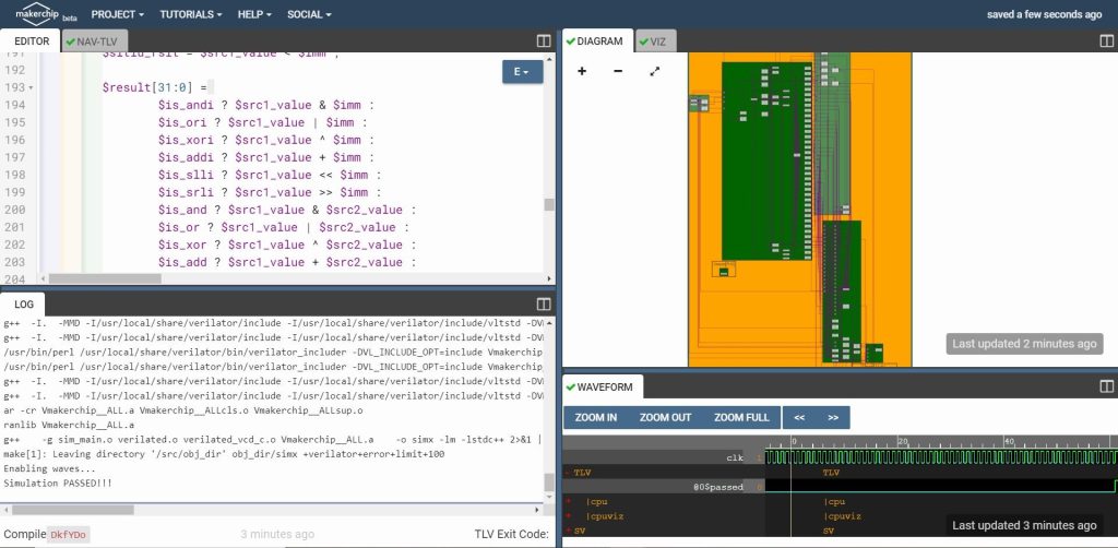 The main tool used in the workshop is the Makerchip.com online IDE, which is public and always open for development of open-source designs.