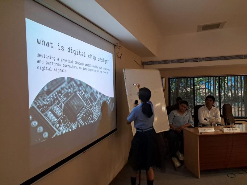Above image captures a moment from an event at NIAS, IISc Bangalore, where high school students, finalists of a chip design program, amazed everyone by explaining digital chip design and Physical Design with a level of sophistication beyond expectations.