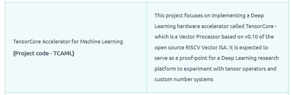 What we are doing with this project is taking a processor which is available that has decent attributes with respect to how would you interface to it. We are taking a very small set of instructions from the deep learning stack that are important and we are trying to build a project around that problem. So, there’s going to be a RISC-V core and there’s going to be a RISC-V vector extension accelerator.