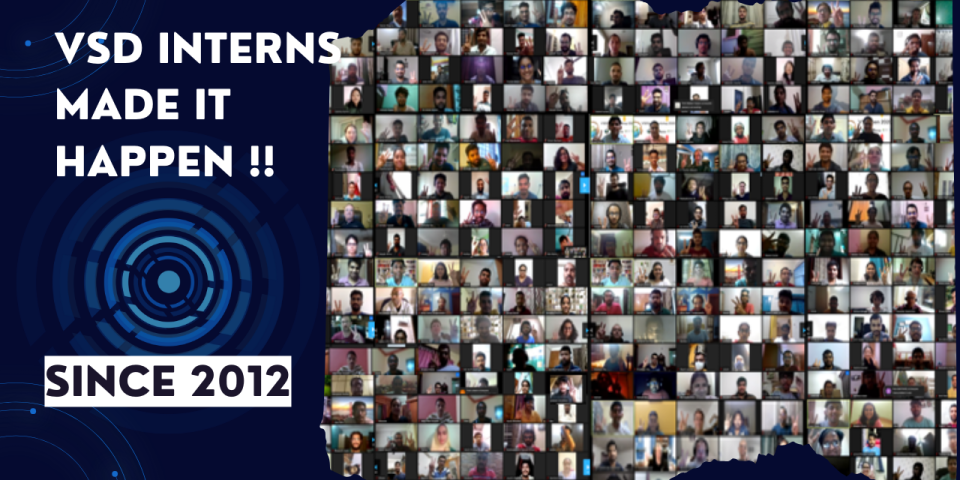 VSD is working towards creating innovative talent pool who are ready to develop design and products for the new tech world. VSD believes in “Learning by doing principle”, and always prepare the student to apply the knowledge learned in the workshops, webinars and courses. We always push our students to work on new designs, test it and work continuously till it becomes the best performing design. Any student who enrolls to VSD community starts working with small design and grows with us and develops a tapeout level design with complete honesty and dedication towards the Work !! Check out VSD Interns Achievement!