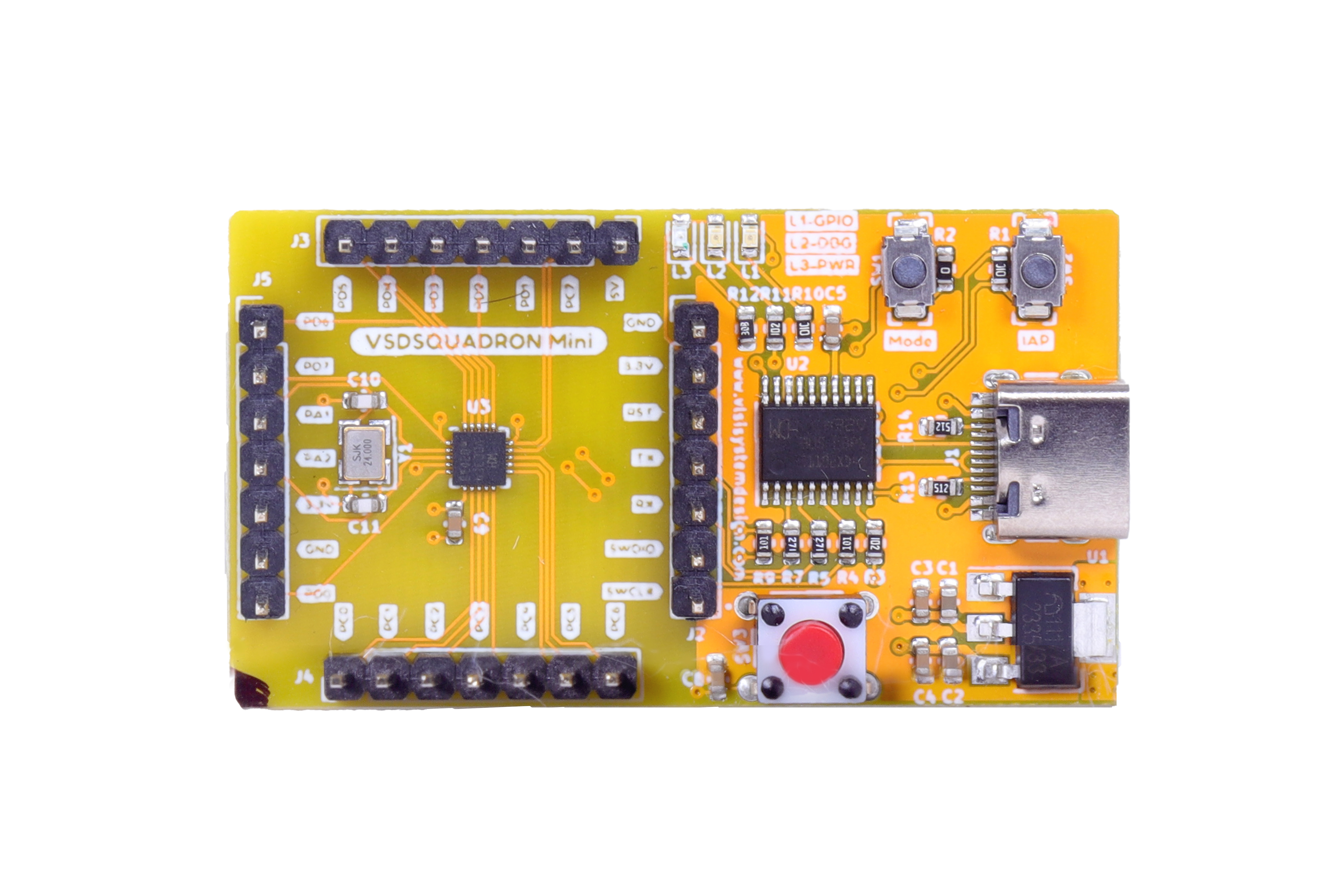 VSDSquadron, a cutting-edge development board based on the RISC-V architecture that is fully open-source. This board presents an exceptional opportunity for individuals to learn about RISC-V and VLSI chip design utilizing only open-source tools, starting from the RTL and extending all the way to the GDSII. The possibilities for learning and advancement with this technology are limitless.