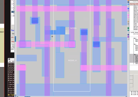 DRC is something which (most likely) is supposed to fail in first instance. Let’s see what you do to fix them. In below eg. drc count is 25. Qrouter (an open-source router, which will be discussed in detail in webinar) is really good with some standard cell sets like the one which comes distributed with qflow, like OSU018, they are really nice one’s to work with. All the ports have nice squares, they don’t have these inside ‘L’ corners as shown below.