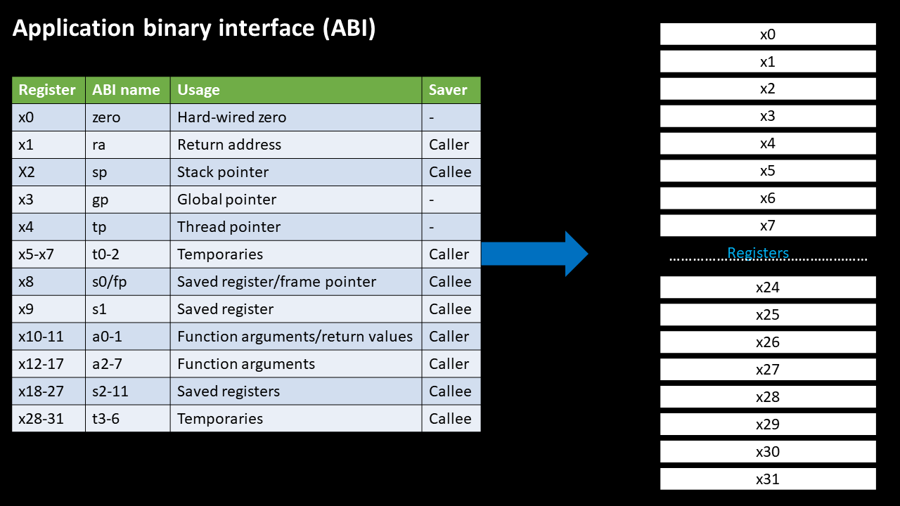 • Application Binary Interface – bridge between software and hardware