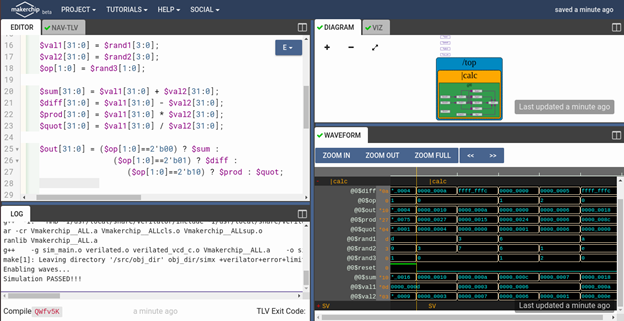 Now, to get familiar with TL-Verilog, we have used Makerchip, a free online environment for developing high-quality integrated circuits, as the platform through which you can code, compile, simulate and debug Verilog designs, all from your browser in a single tab!