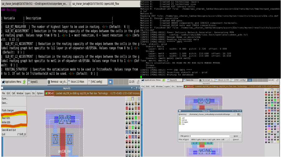 - We check for manufacturing issues like DRC, LVS, ERC etc., using foundry given rule decks. Once we get the drc-clean design, we extract the gdsii file for manufacturing the chip.