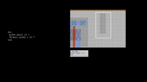 In above simple example, ‘myFoundary’ from Poland, gave me a rule saying NWELL width has to be atleast 12 units (units are usually ‘lambda’, and I will talk about it more).